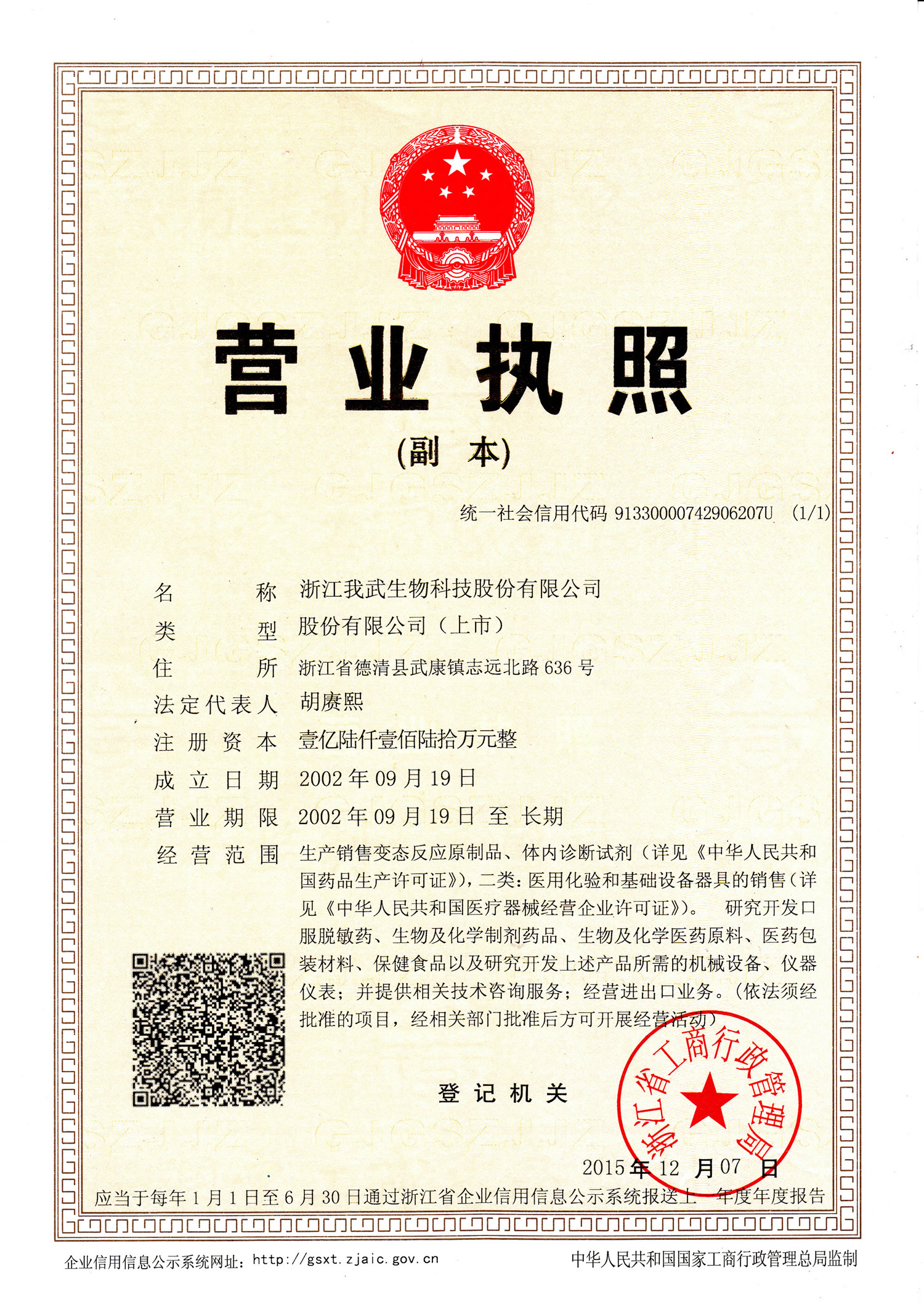 浙江我武生物科技股份有限公司是一家高科技生物制药企业,2014年1月于深交所上市,证券代码300357公司专业从事过敏性疾病诊断及治疗产品的研发、生产和销售,是目前国内唯一能够提供舌下含服脱敏药物的企业和亚洲最大的脱敏药物及过敏原检测试剂生产商!