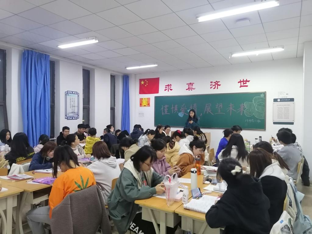 2019级中药二班全体同学以及专职导员胡颖媛于2021.03.18在和剂甲座311举办班级学风建设主题班会