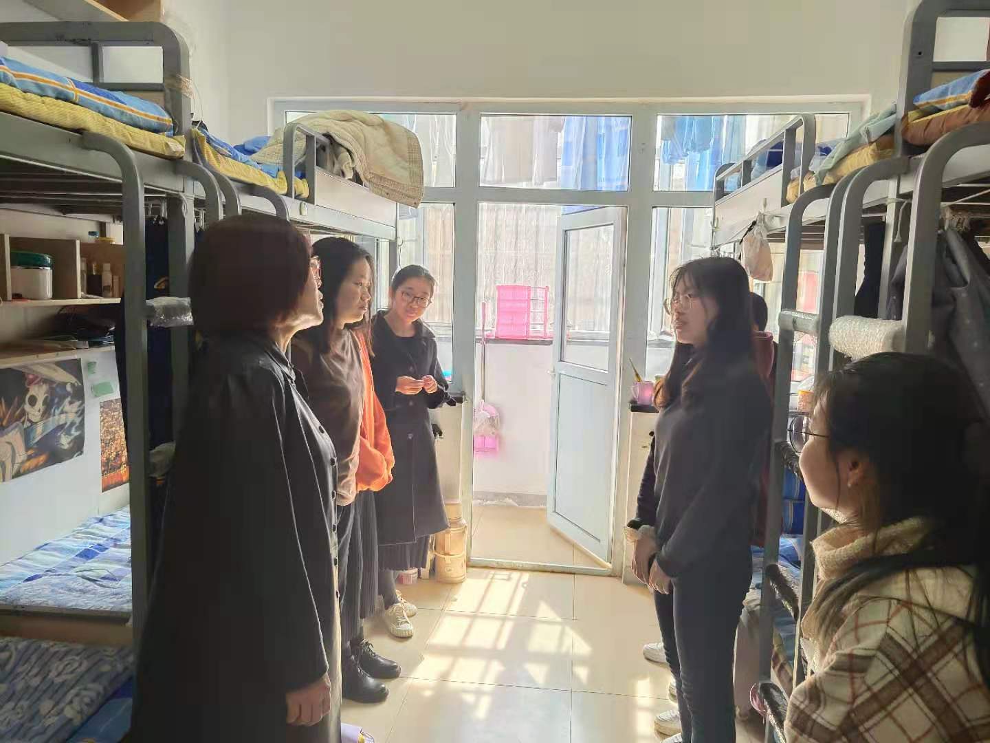 2021年3月8日,为确认学生安全返校并说明开学应注意的相关事项,庞老师特亲临宿舍看望同学们,了解返校情况,对于毕业生的实验、考研、找工作都是头等大事,老师了解大家的近况,并悉心指导,解决困惑。并就少数学生请假参加生源地各类考试的问题,同时学院分管领导的请假批准权限只有一周时间。超过一周以上必须经过学校相关领导批准。所以,如果同学们的考试地点不在太原或榆次,只能先按学校要求时间返校,届时再请假回去参加相关考试。确有在医药单位实习的学生,要签订校外实习三方协议与家长知情承诺书!