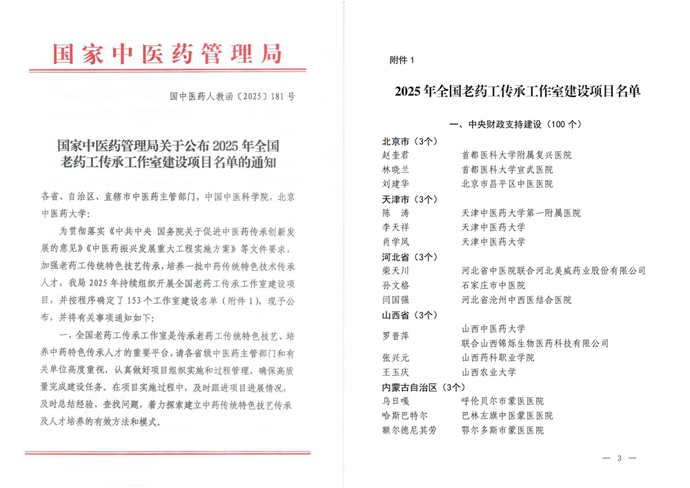 8月26日,国家中医药管理局正式发布《关于公布2025年全国老药工传承工作室建设项目名单的通知》,山西中医药大学申报的“罗晋萍全国老药工传承工作室”成功入选。该工作室由山西中医药大学牵头,联合山西锦烁生物医药科技有限公司共同建设,标志着我校在中医药传统技艺传承与高层次人才培养方面取得重大突破。