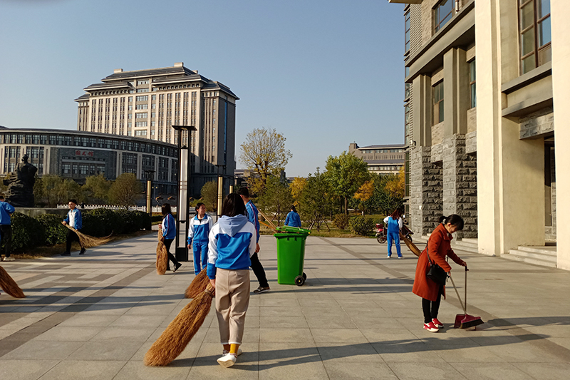 大家身着校服,拿起扫帚、铁锨等清洁工具,有的清理地面树叶,有的捡拾草地和绿化带的垃圾,全体党员积极发挥模范带头作用,不怕脏、不怕累,不放过任何一个路面与死角,大家一起用辛勤的劳动和汗水换来了校园的干净和整洁。