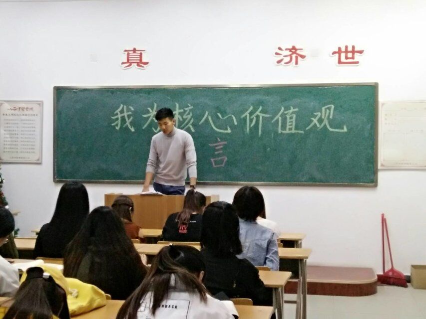 首先,团支书韩琦向我们介绍了开展本次团日活动的背景——习近平总书记给第三届中国“互联网+”大学生创新创业大赛“青年红色筑梦之旅”的大学生回信,勉励同学们扎根中国大地了解国情民情,用青春书写无愧于时代无愧于历史的华彩篇章。随后,团支书韩琦希望大家相互讨论“我为核心价值观代言”的深刻内涵,大家展开了激烈的探讨。紧接着,团支书韩琦希望大家能够上台向大家分享自己对于核心价值观的个人见解。李政良,赵飞龙,苏孟元上台分享了自己的个人的独特见解,大家纷纷鼓掌赞同。最后,团支书韩琦做总结陈词:我们一定要永远紧跟党高举中国特色社会主义伟大旗帜,以奋发向上的精神状态和更加优异的学习成绩回报祖国。