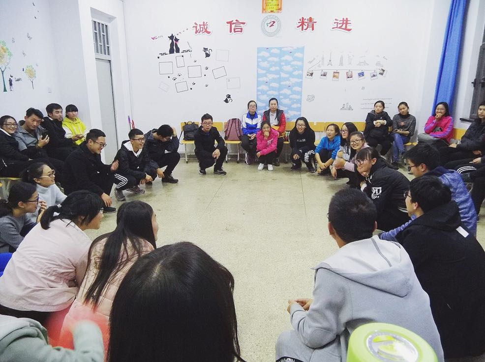 活动初始,大家像往次活动一样坐在围成圈的椅子上,在心委简单介绍了本次主题,并指定由一人开始,随机选取同学来讲一条“正面挫折”的名言警句,在规定的时间内完成接力,同学们的积极性很快燃烧起来,游戏的速度越快,难度也越大,这时候文化基础略差的同学便有点跟不上节奏,很快败下阵来。第一轮的小惩罚比较简单,是按主持人的要求做出指定动作,像猫咪,老鼠这样,主要是为了让大家快速的融入游戏中来。