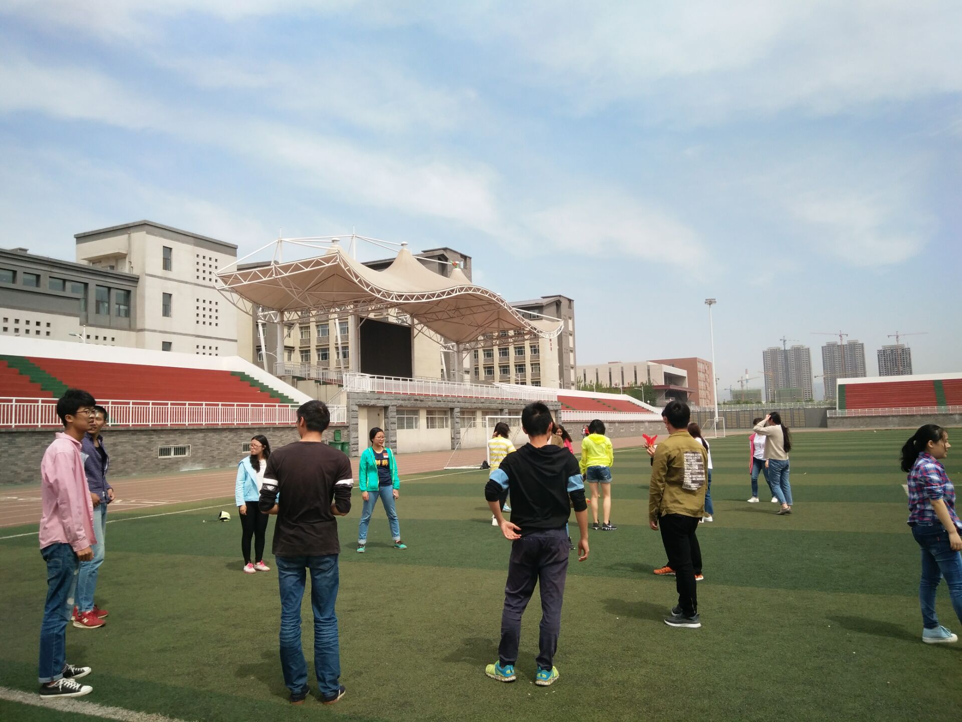 为促进“走下网络,走出宿舍,走向操场”活动在我院深入开展,丰富学生的课余生活,营造和谐、健康、向上的校园氛围。5月11日,15级食品科学与工程2班班全体同学于操场进行了一系列的户外活动。