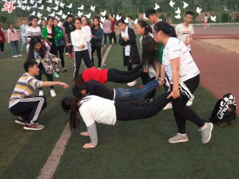 为了增加活动的趣味性,我们以团体活动的形式,开展此次活动。活动分为两部分,第一部分为“五毛一块”,以个人为单位,男生价值五毛,女生价值一块。由主持人随意说价钱,同学们要立刻做出反应,与合适的同学报团组合,在三十秒内没有成功组队的同学将被淘汰。第二部分为“七手八脚,以团小组为单位,主持人说十手五脚,小组成员要将十只手和五只脚放在地面上,完成动作并且坚持三十秒。同学们各自动脑,积极思考,最终团小组组团三连胜,获得冠军。