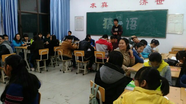 孔子以“学而不思则罔,思而不学则殆”来教育子由子路要勤学善考。为了让同学们能将所学知识充分理解和应用,2016年3月24日晚15级食品科学与工程三班在仁爱书院411教室举办“猜成语”比赛。