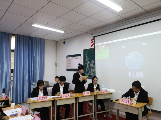 执行主席介绍了本次比赛规则和注意事项。她指出本次辩题—“超前消费是利大于弊还是弊大于利”,并介绍了辩论正、反方队伍,宣布比赛规则。