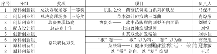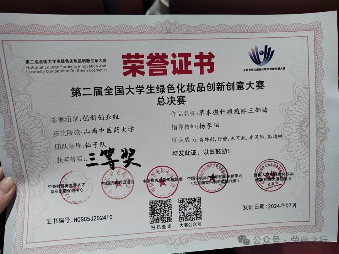 在本次大赛中,国产又粗又猛又大爽积极组织学生参加,并在各项组别中均取得了斐然成绩。经过层层筛选与激烈角逐,我院共有三个项目进入全国总决赛现场赛,其中,“肌肤之悦--菌菇抗氧美白系列护肤品”项目脱颖而出,荣获原料创新组一等奖,“草本微针痘痘贴三部曲”荣获创新创业组三等奖。