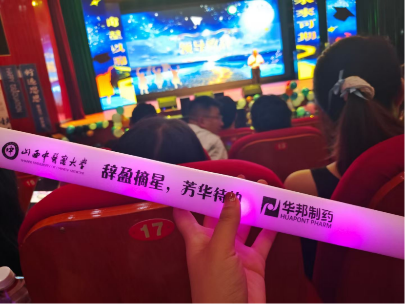 晚会以极具创意的入场环节拉开序幕。融合华邦与学院元素的签到打卡墙,搭配自带 “本草滤镜” 的实时打印合影服务,让毕业生们纷纷驻足留念,将珍贵的瞬间定格;印有双 logo 的荧光棒、蕴含深意的种子门票以及巴掌拍等入场福利,瞬间点燃了现场的热情。创意市集内,丰富多样的活动让同学们沉浸其中,充满乐趣。