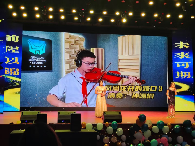 “只要用心就能看见,从白云看到不变蓝天”,清澈且充满力量的和声响起,如同电影里主角们对生活、对梦想的无畏追求,这也仿佛是毕业生们对未来许下的庄重誓言。演唱过程中,舞台背景的大屏幕上播放着表演者精心录制的视频,这些画面与歌声相互交织,就像电影情节与主题曲的完美融合,将现场的气氛推向又一个高潮。