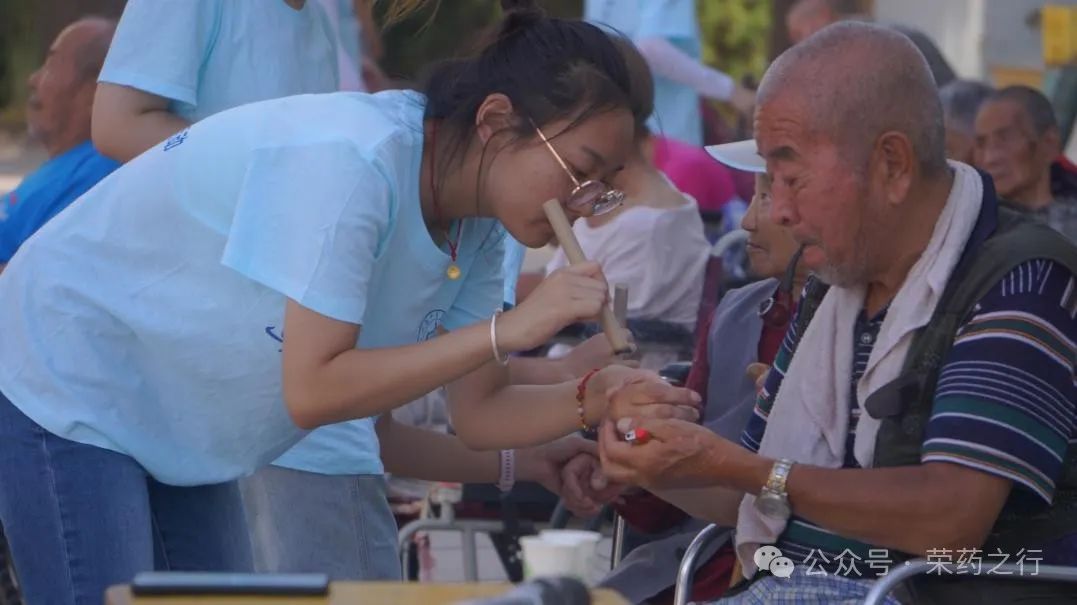 随后,队员们为老人提供了推拿和艾灸服务,通过专业的推拿手法帮助老人们缓解了身体上的不适,让他们在享受服务的同时,也体验到了身心的放松与愉悦。老年人气血亏虚,经络之气运行不畅,脏腑功能减退,机体抗病能力较弱。而三伏天,在夏天自然阳气最旺盛的时候,是治疗、调整疾患的最佳时机。艾灸作为中医传统疗法之一,以其温经散寒、调和气血的特性,能够提升人体的阳气,具有调节机体失衡状态、提高免疫力,减轻冬病的发作次数及发作症状,加快康复的作用,受到了老人们的热烈欢迎。