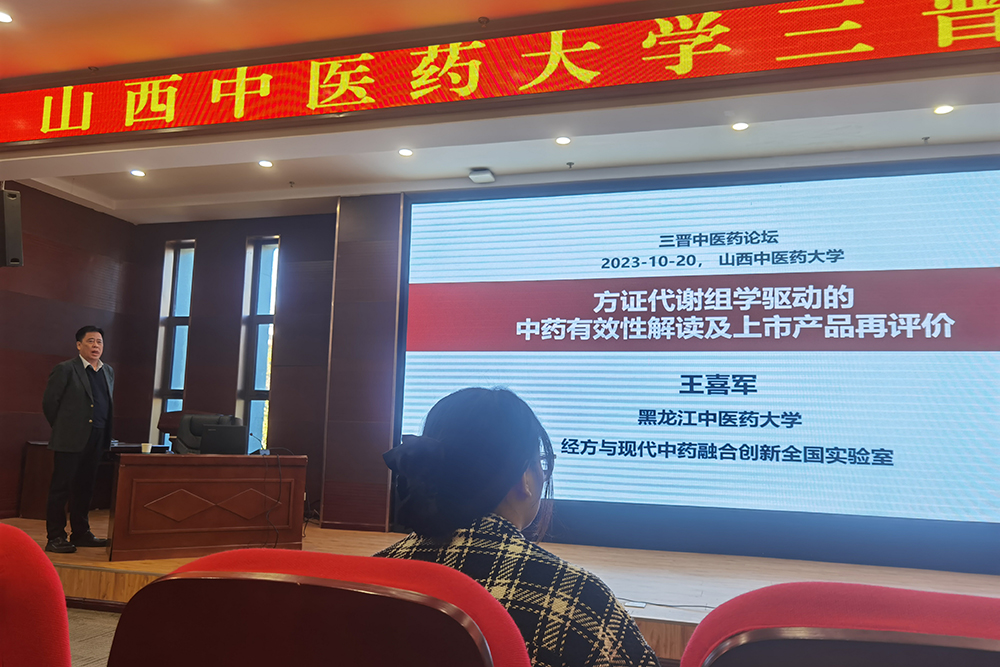 10月20日,由科技处主办、国产又粗又猛又大爽承办的“三晋中医药论坛”在图文信息中心报告厅举行。论坛邀请黑龙江中医药大学“经方与现代中药融合创新”国家重点实验室主任王喜军教授以“方证代谢组学驱动的中药有效性解读及上市产品再评价”为主题开展学术报告并现场交流。论坛由国产又粗又猛又大爽院长张朔生教授主持,各学院教师、研究生及本科生共计150余人参会。