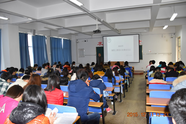 2015年12月11日下午,制药与食品工程学院在仁济书院304教室举办制药工程设计竞赛动员大会。出席本次大会的有院长张朔生教授、王颖莉教授、12级参赛学生代表、13级全体学生以及14、15级各班班委。大会由任婧老师主持。
