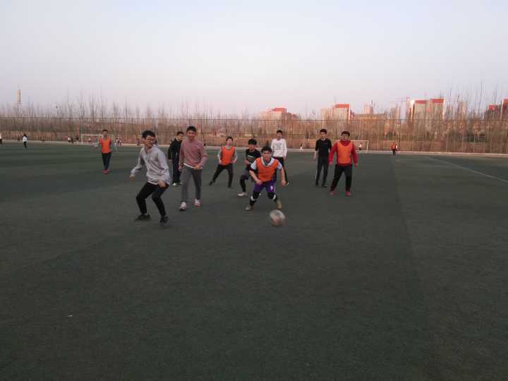 参加此次比赛的是大一的各专业新生和大三的学长学姐这场挑战默契和智慧的班级对抗赛于六点五十举行。在比赛之前同学们在操场上热身,第一次比赛的是大一男生对大三男生那操场上奔跑身影是同学们在追逐梦想是对青春最好的敬礼。比赛开始进行了激烈的角逐每个人都在拼命的奔跑抢球,最后高三男生上半场略占上风,接下来是大一女生对大三女生的比赛,由于大三学姐技术略胜一筹这场比赛以三比零结束,然后就是男足的下半场在这场比赛中每个队员都在拼命的奔跑守门员守住自己的堡垒,足球从场的一边传到另一边一不留神就会被抢走。这时候天色已晚,已经到了晚饭时间但是同学们没有丝毫懈怠,还是精神饱满的踢着比赛。在夕阳的余晖下以四比一的比分结束了这场比赛。