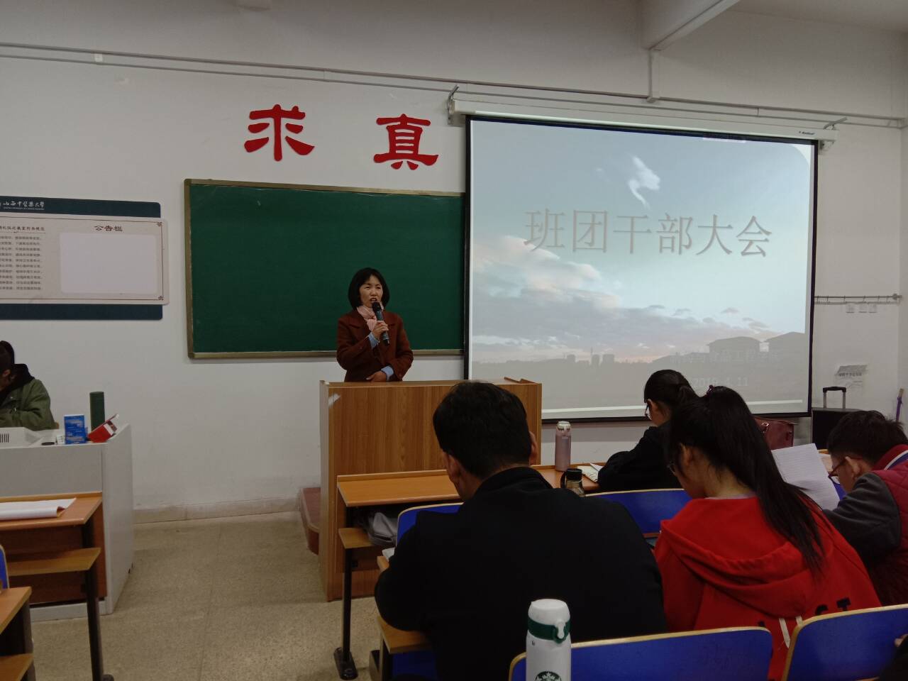 2019年4月11号晚七点整,我院于和剂书院甲座210教室开展了班团干部大会。出席此次大会的主要有制药与食品工程学院分团委毛文英老师、学生会主席梁宇同、副主席李思卿和冯烁、各部部长及各年纪各班班委。