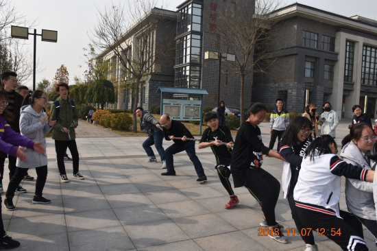 追逐十一月的和风,沐浴金秋的阳光。为了锻炼大一新生的身体素质,营造师生间团结协作的氛围,中药学院于11月7日中午在傅山广场举行了师生联谊赛开幕式。院长张朔生、党总支书记庞维荣出席开幕式,中药学院分团委书记王晓英、各位辅导员老师及2018级全体新生参加。
