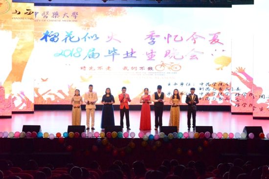本场晚会分为上、下两场,总计19个节目,整场晚会高潮迭起,节目生动欢快。活力健美操缓缓拉开本场晚会序幕,也拉开大四毕业学子对榴花六月的恋恋不舍。《江南四大才子》对爱情诉尽衷肠,其中又穿插了对专业知识的深入理解和社会现实的合理利用,将幽默且富内涵的方式倾情演绎。毕业生辅导员带来的《明天会更好》热情洋溢,辅导员们将桃李之情融入每句歌词里,带动全场气氛,赢得全场欢呼。学弟学妹的《你曾是少年》,句句歌词倾注了对毕业生的祝福和希望,不一样的手语表演形式勾忆起我们对青春的回忆。《爱的华尔兹》由中药学院13届主席团共同演绎,唯美的礼服、精美的舞蹈、用心的准备赢得在场欢呼和喝彩。