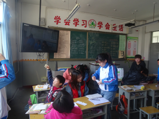 随后,同学们分四组跟着学校老师们一起带队进入孩子们教室,大家给孩子们送上自己准备的爱心物品,和孩子们一起玩耍、一起学习,也感受着他们的生活方式。不少同学也拿出手机记录下和孩子们在一起的瞬间,留下些许感人回忆。