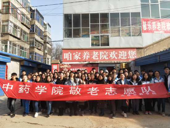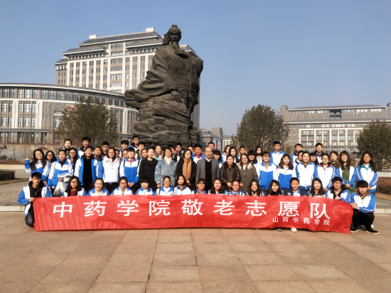 为弘扬中华民族传统文化精神,深入贯彻落实十九大会议精神,2017年12月28日,中药学院学生会组织敬老爱老志愿者活动,给晋中市榆次区咱家养老院送去温暖和祝福。中药学院党总支副书记庞维荣,院长张朔生出席启动仪式,中药学院学工办主任王晓英,中药学院辅导员任婧、胡楠、韩艺及八十余名志愿者参加活动。