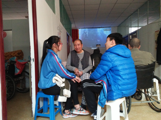 志愿者们在各组负责人的安排下跟老人们聊天、下棋,谈心、讲新闻;给老人们按摩、唱歌;帮助老人打扫卫生,修剪指甲,梳理头发。敬老院里一片热闹温馨,同学们与老人就像与亲人一样的融洽,一样的和睦。在依依不舍中我们的敬老活动走近尾声,同学们迟迟不愿离开,短暂的相处让他们已经把彼此当做了亲人。希望下次还可以再来到这里,给老人们带来更多的爱心,更多的温暖。
