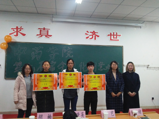 为丰富中药学院学子的大学生活,拉近广大同学间的距离,在增强宿舍成员之间合作精神和集体意识的同时提升校园文化内涵,中药学院学生会于2017年12月6日晚6时30分在和剂书院甲座309教室成功举行第七届宿舍文化创意大赛决赛。本次大赛诚邀中药学院学工办主任、分团委书记王晓英、中药学院班级辅导员杨智超、任婧、胡楠、韩艺担任决赛评委,中药学院学生会主席、副主席、各部部长及各班级代表参加了这次活动。