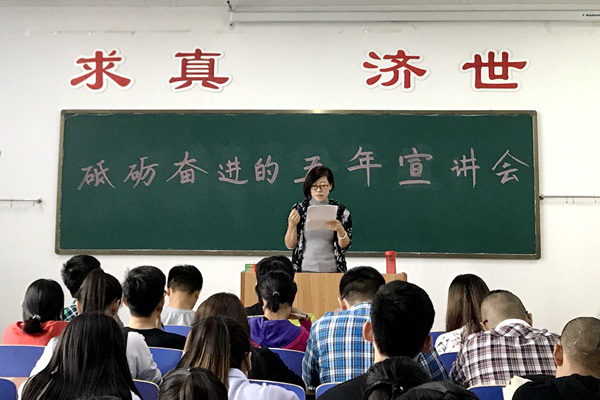 为广泛宣传党的十八大以来党和国家事业发展的生动实践、重大成就、宝贵经验,唱响主旋律,弘扬正能量,喜迎党的十九大的胜利召开。9月26日,我院在和剂书院甲座309室召开“砥砺奋进的五年”宣讲会。本次宣讲会由中药学院党总支副书记庞维荣主讲,我院全体学生党员、班团干部代表参加。