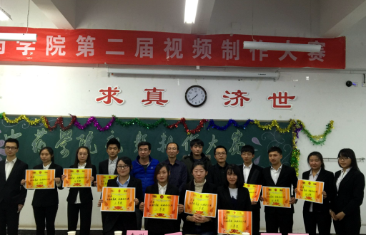 为了丰富大学生的课余生活,给学生提供展示自我风貌的平台,中药学院信息部举办了视频制作大赛。经过初赛与复赛的逐层筛选,选出十个优秀作品进入决赛。中药学院于12月6日下午17时30分在仁济书院甲座223教室举办了第二届视频制作大赛,有幸邀请到李刚、弓强、刘建云和李龙四位老师来观看这次比赛。本次活动由主持团成员魏挺超和冯玲玲主持,各班学习委员,宣传委员及班长参加,以及每位选手的亲友团。