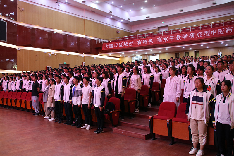 学院以新中国成立70周年为契机,开展爱国主义教育活动。2019级新生见面会暨授袍仪式上,全体师生合唱《我和我的祖国》;开展“壮丽七十载,奋进新时代”演讲比赛,选手们旁征引博、激情昂扬的演讲将对祖国最真挚的情感注入演讲之中,激起全场观众爱国共鸣;在学院班级教室张贴国旗,每周一课前班级内共唱国歌,强化青年学生爱国主义教育。