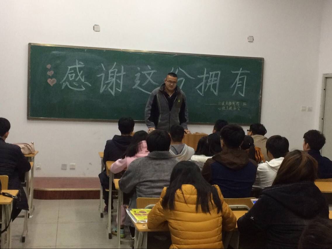 2016年12月21日,我班全部人员在仁爱书院108教室参加“感谢拥有”主题心理活动,学生踊跃登台,真情喊出“爸爸妈妈我爱你们,你们辛苦了!”场面感人,气氛热烈。