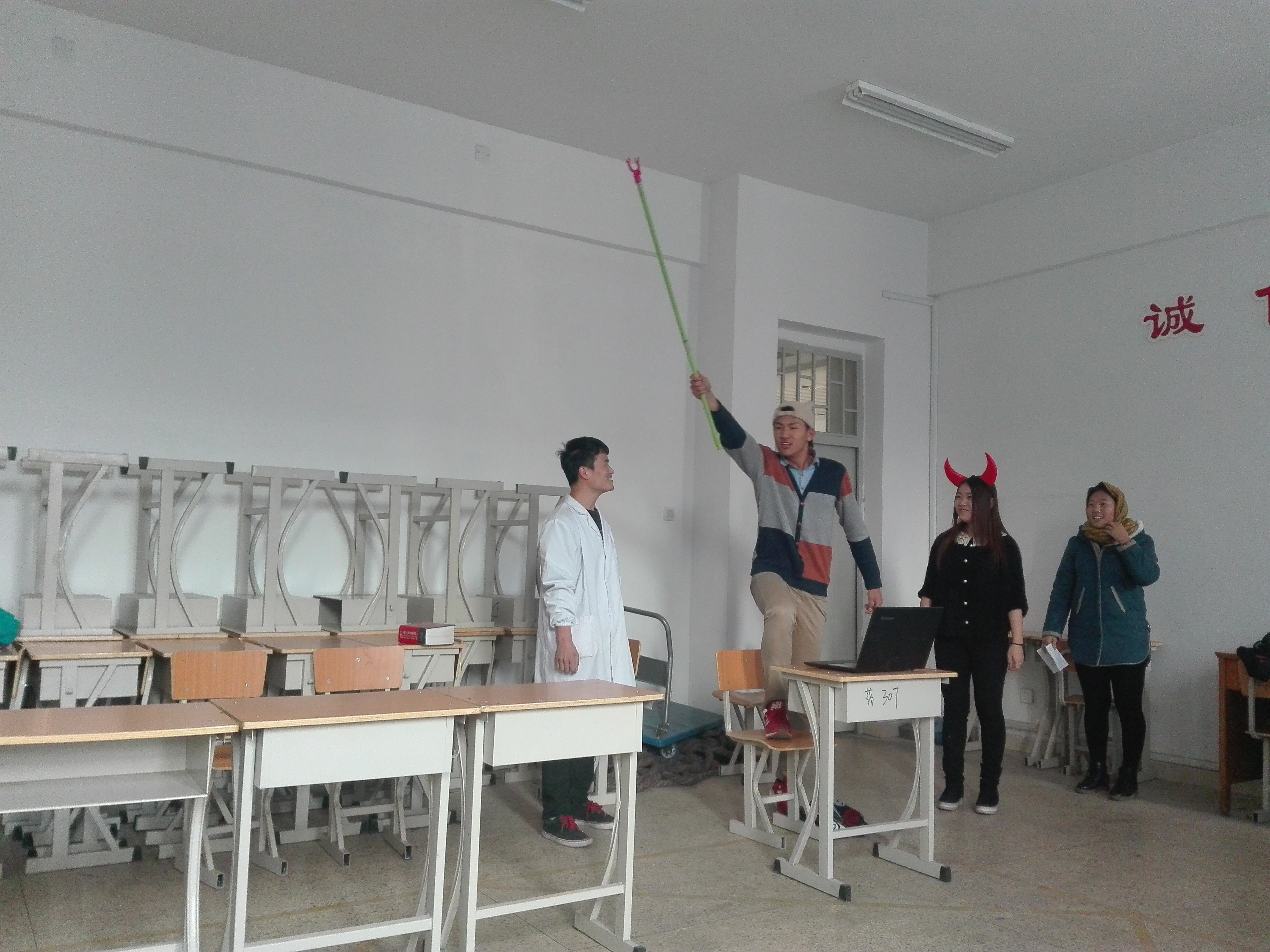 为激发学生热情,活跃学院气氛,推广校园文化,促进学生健康成长,2016年11月25日中午12点30分,由我院文艺部承办的心理话剧于和剂书院甲座307教室进行复审,辅导员李龙、孟喆,任婧和王小敏老师以及学生会副主席徐雪源和各部部长担任本次活动评委。