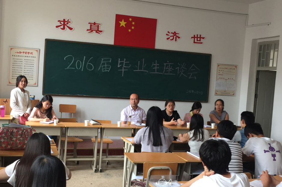 座谈会伊始,张院长首先代表学院向2016届毕业生顺利毕业表示祝贺,就毕业生毕业实习及毕业论文设计等方便存在的问题与不足需要改进的方面进行了交谈,并希望毕业生代表就学校和学院未来发展给与一些建设性意见。毕业生崔云倩同学指出,学院应多增加学生实习的机会,并与大一大二学习课程期间多设置这样的机会,培养学生的专业兴趣。张院长与王院长就毕业生未来发展和建设规划提出了很多建设性意见,并祝福毕业生们在新的征程中前程似锦。